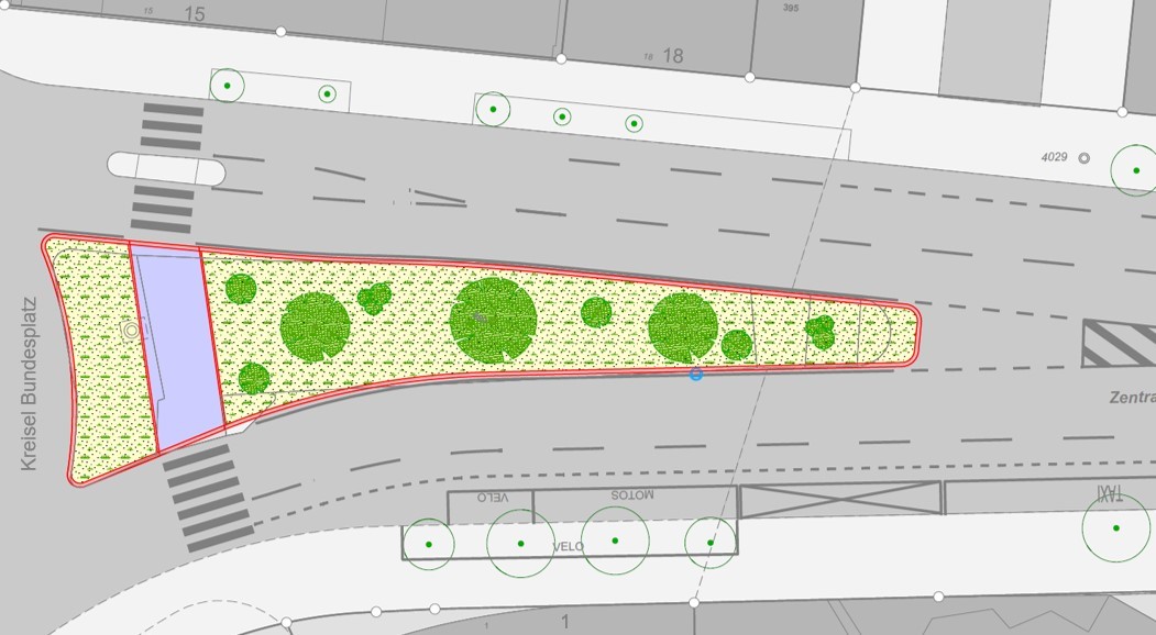 Im November 2022 wurde der Deckbelag auf der Zentralstrasse von der Hausnummer 42 bis zum Bundesplatzkreisel saniert. Die Stadt Luzern und der Kanton Luzern nutzten die Sanierung um die Sicherheitsdefizite zu beheben. Dazu wurde der Fussgängerstreifen auf Höhe Sempacherstrasse sowie die gesamte Parkierung im Mittelbereich der Strasse entfernt. Der frei gewordene Mittelbereich wurde vorerst mit einer einfachen mobilen Gestaltung (Pflanzensäcke mit Kleinbäumen und Sträuchern) begrünt und mittels Pfosten abgesperrt. Eine bauliche Entsiegelung dieses Mittelbereichs war aus rechtlichen Gründen, im Rahmen der Deckbelagssanierung, nicht möglich. Deshalb wurde jetzt ein Strassenprojekt erarbeitet, welches eine Entsiegelung und Begrünung von diesem ungenutzten Mittelbereich vorsieht.